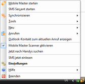 The main Mobile Master functions can be integrated directly in the respective contact program or email client using AddIns.